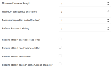 Here, you can set up a site-wide policy for user passwords. Any new password created will need to conform to the policy.