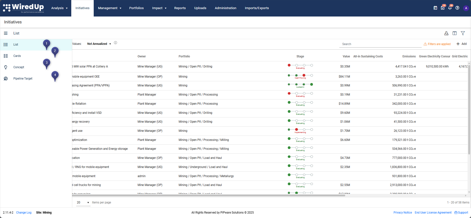 The List View displays all your initiatives in a tabular format, making it easy to sort, filter, and analyze your pipeline.