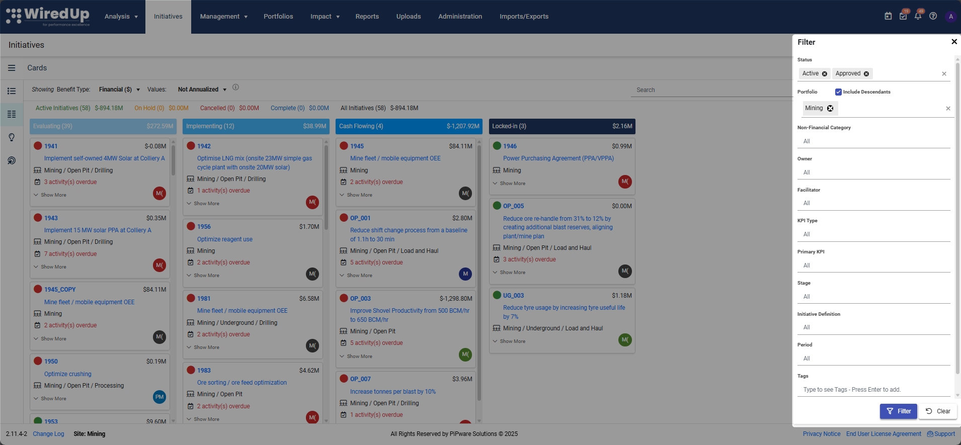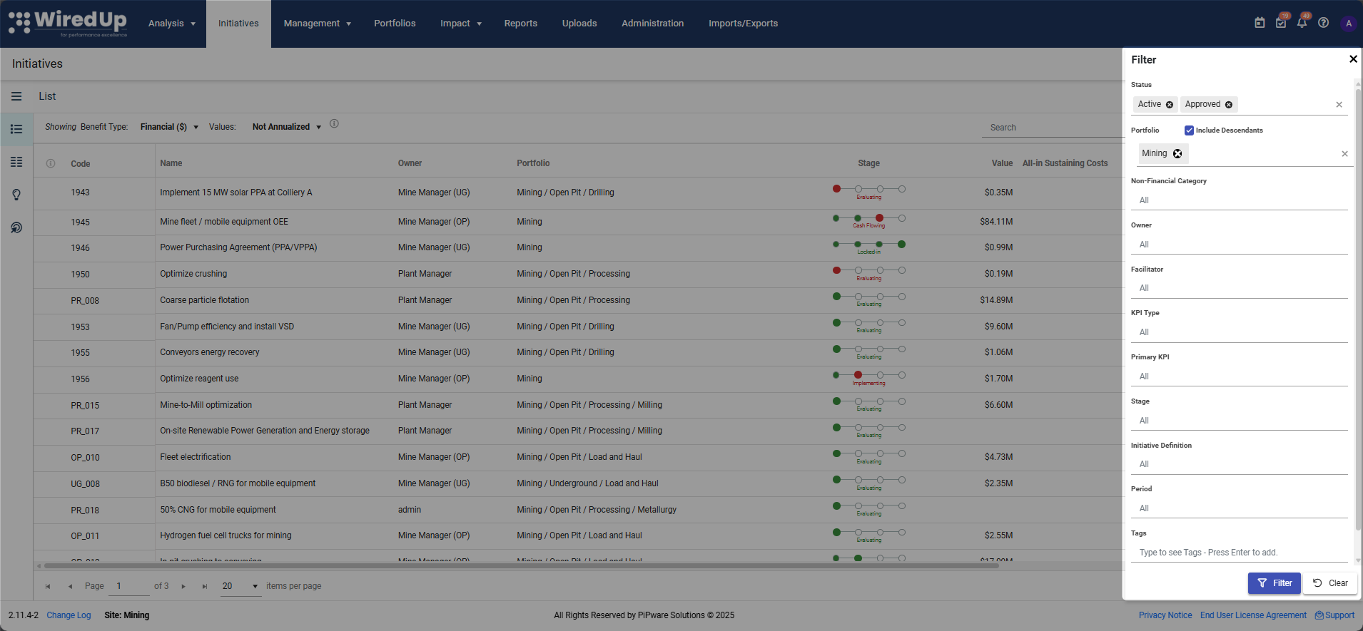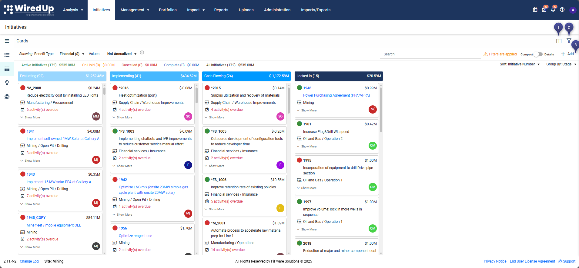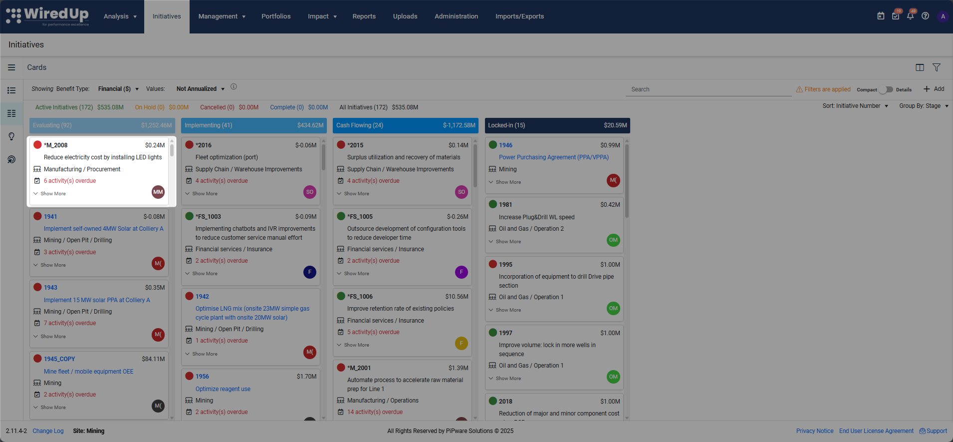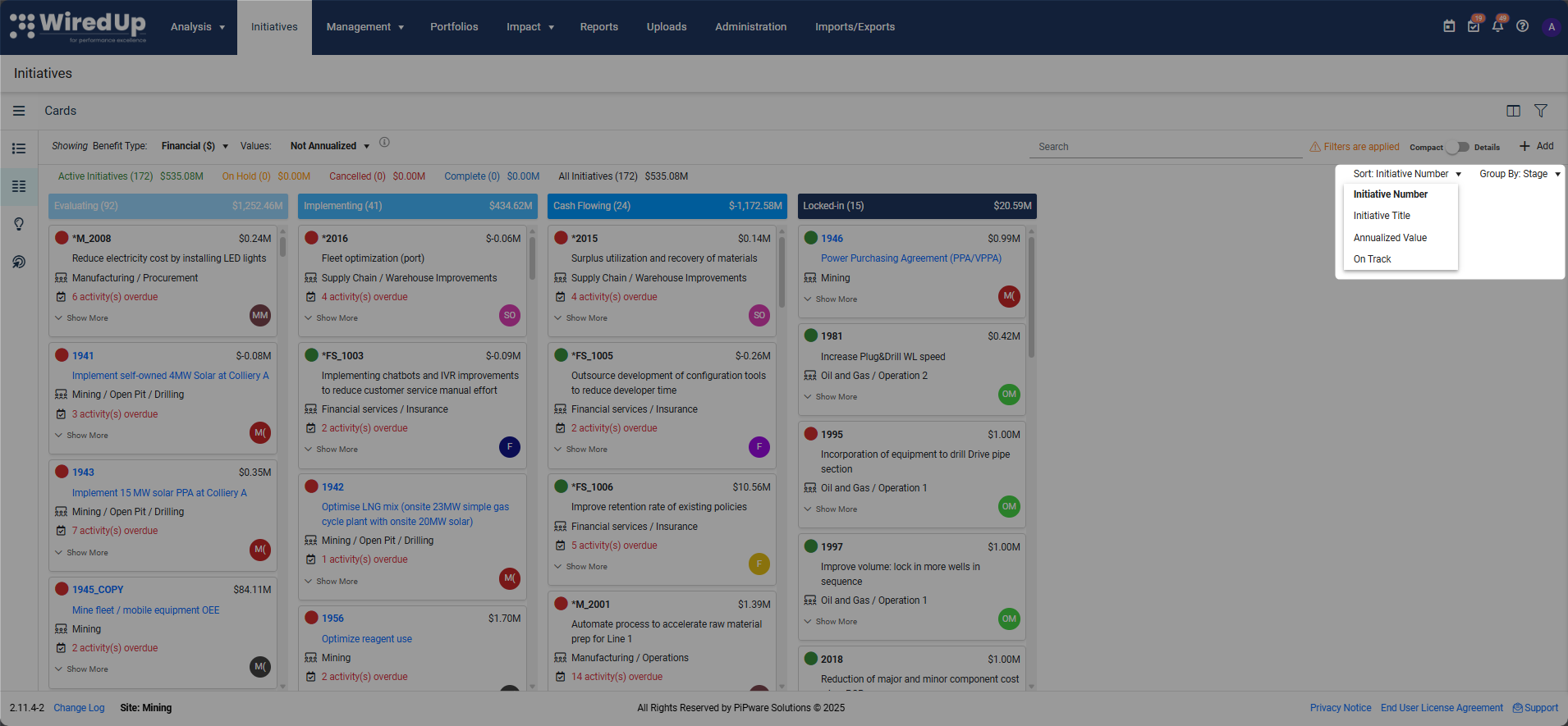 - All Initiatives - Shows the total count and combined value of all initiatives