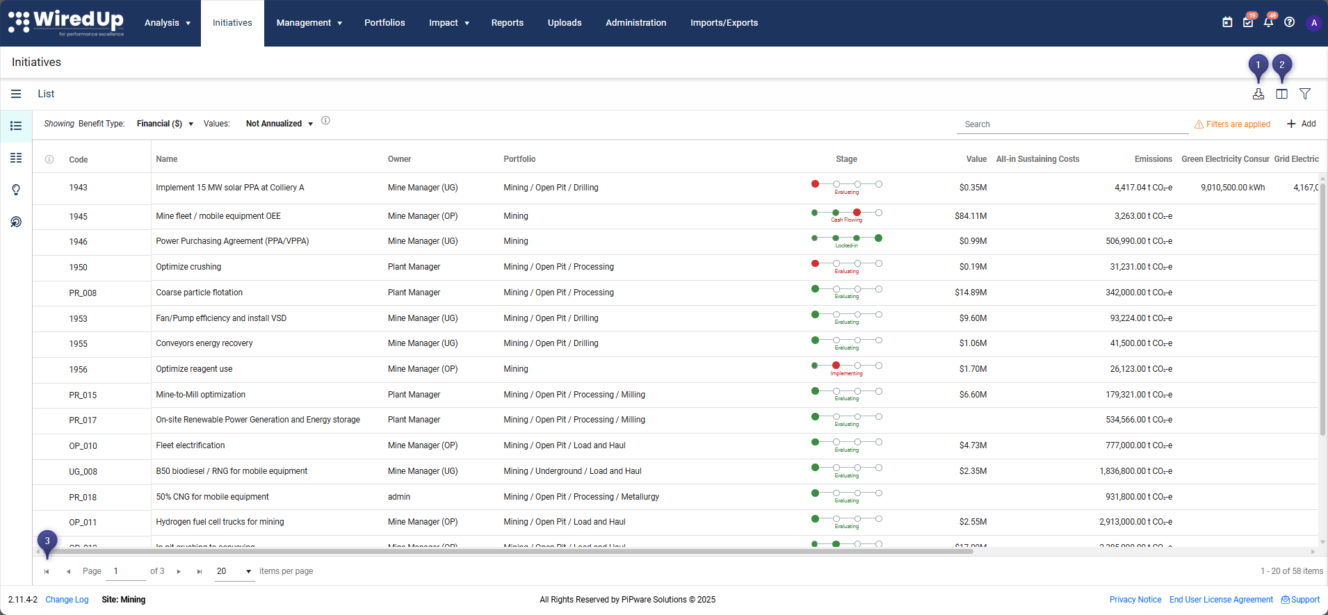 - Non-financial values can also be monitored and displayed in the Initiatives List view