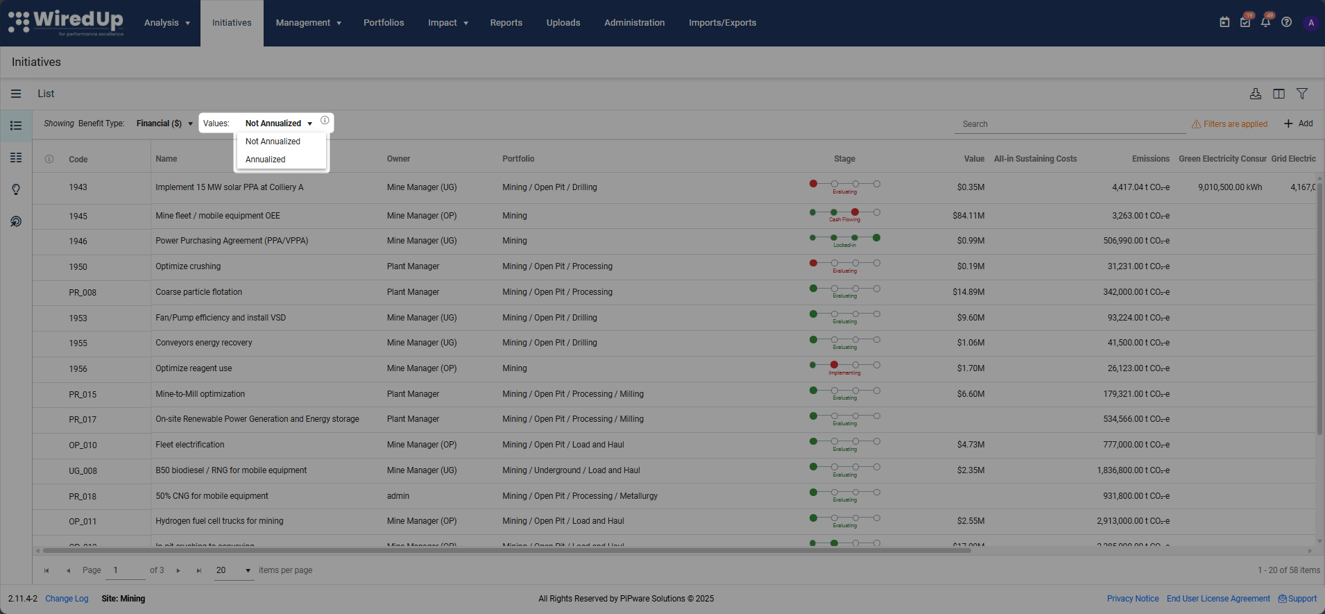 - Manual Capture - The Annualized Value entered directly on the initiative's Overview page