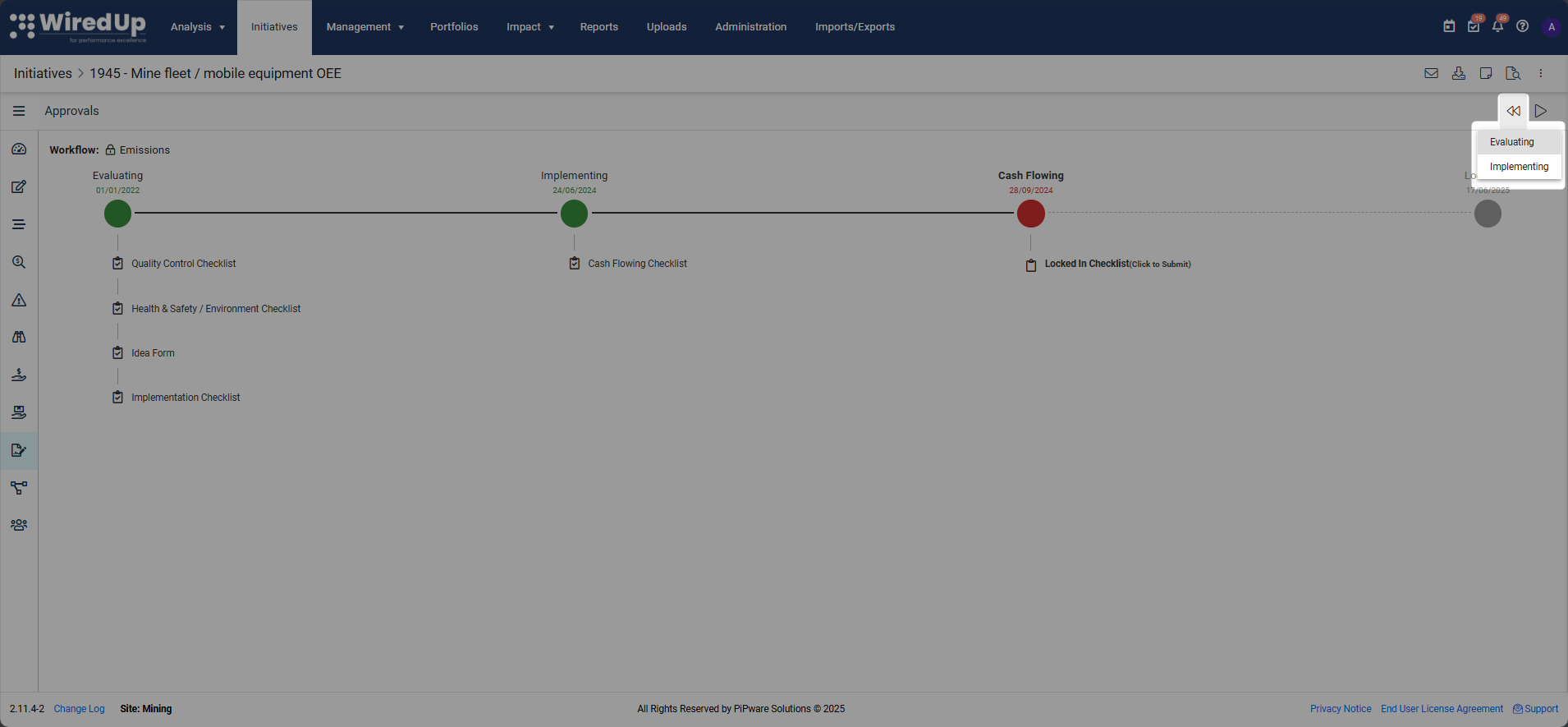 - When the Idea/Initiative has progressed to the next stage, the idea/initiative definition cannot be changed unless the idea/initiative moves back to an unlocked state (i.e moves back to the first stage).