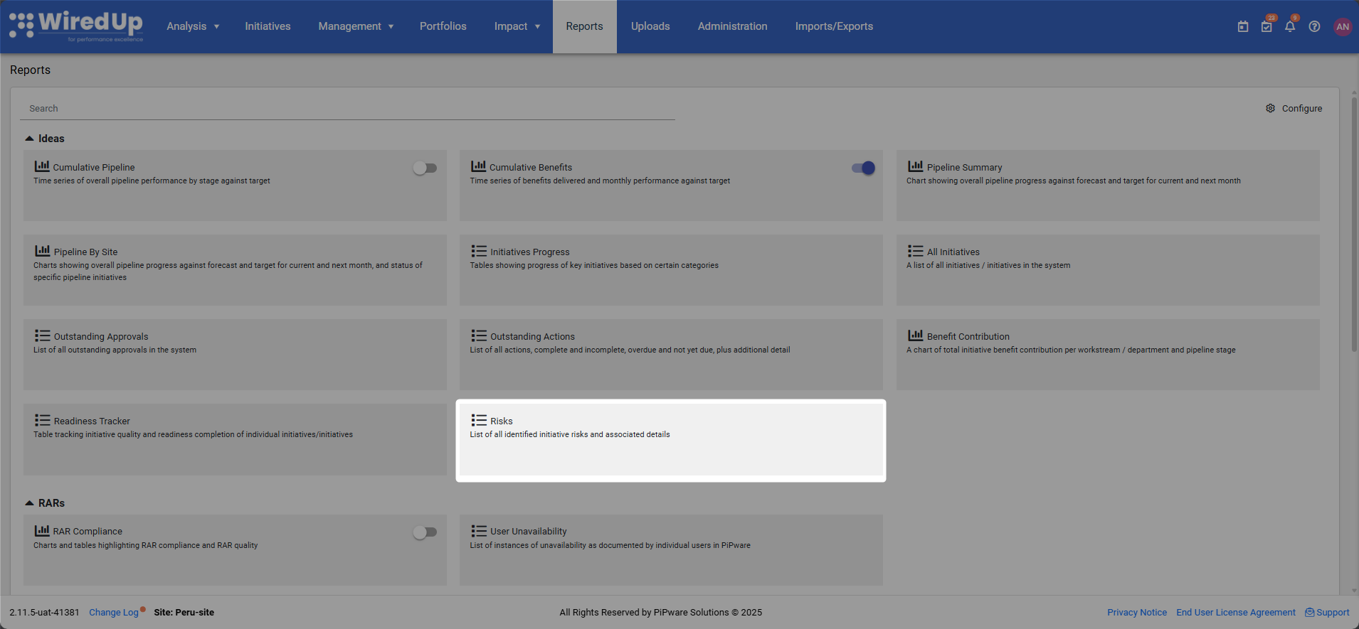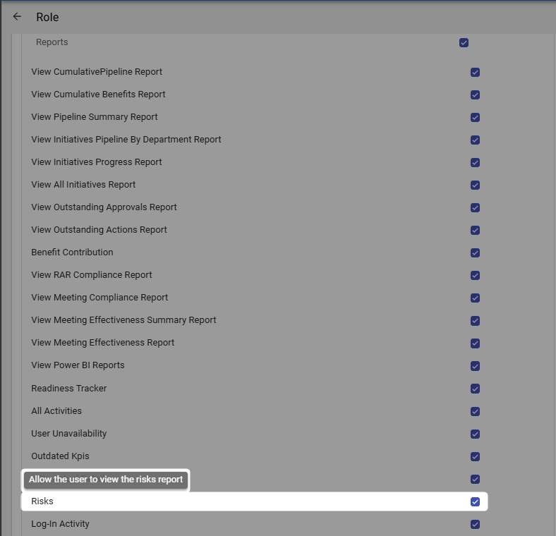 Note: Users need the Risks permission enabled in their role under Reports to be able to access and use this report. If you cannot view this report, please contact your system administrator to verify your permissions.