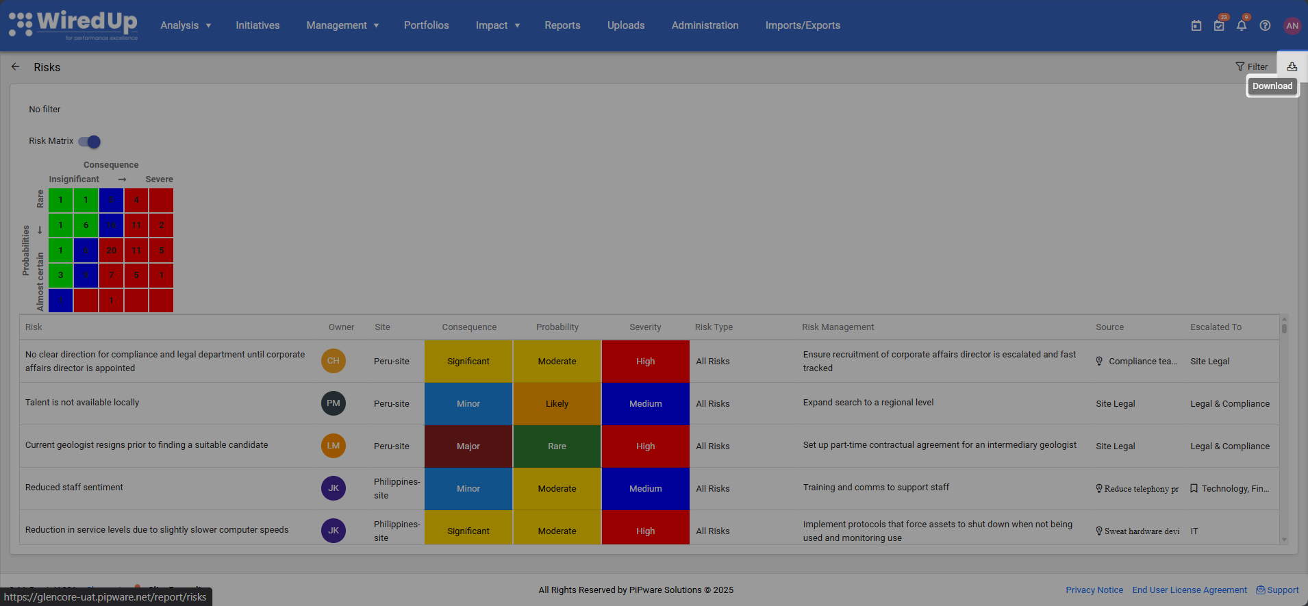 - Download and archive reports periodically to maintain historical records of risk trends and management effectiveness