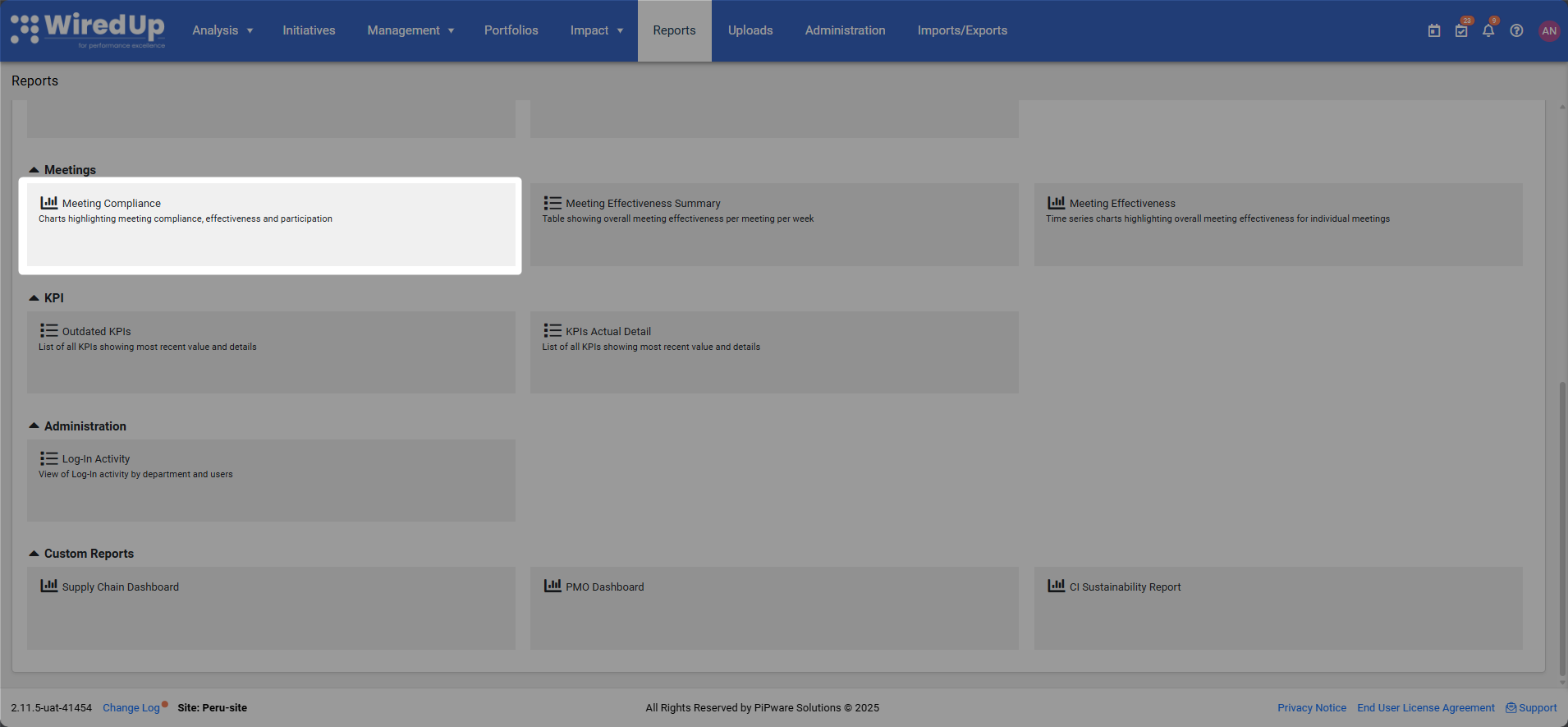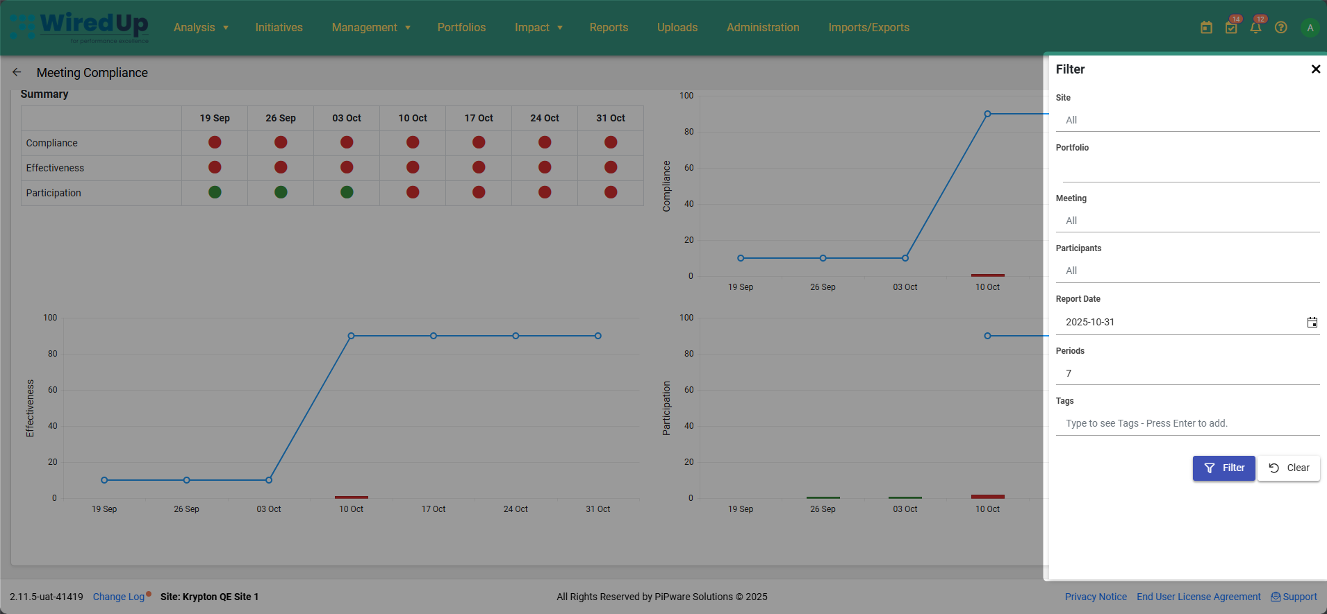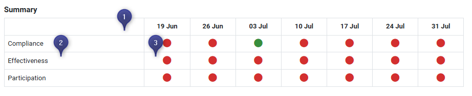 Note: Meeting targets for compliance, effectiveness, and participation are configured in Administration > Meeting Targets.