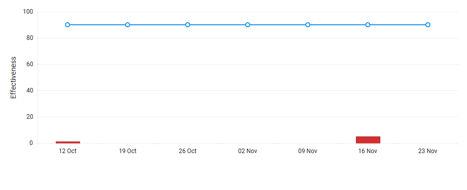 - Line Chart (Blue): Represents the target effectiveness percentage over time