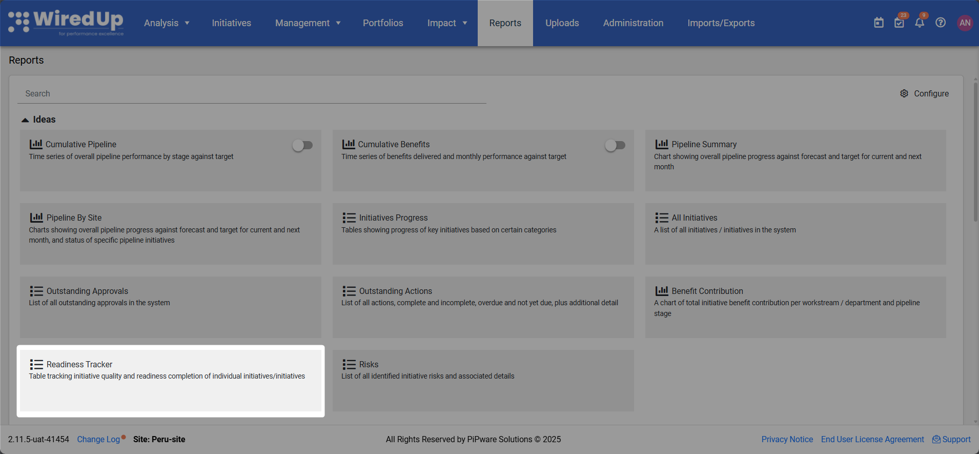 - Use the report before initiatives progress to next stages to ensure ideas/initiatives meet readiness criteria before progression