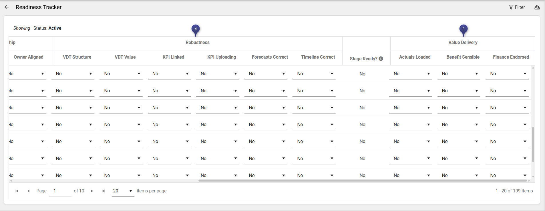 - VDT Structure: Indicates whether the Value Driver Tree structure is properly configured (Yes/No dropdown)