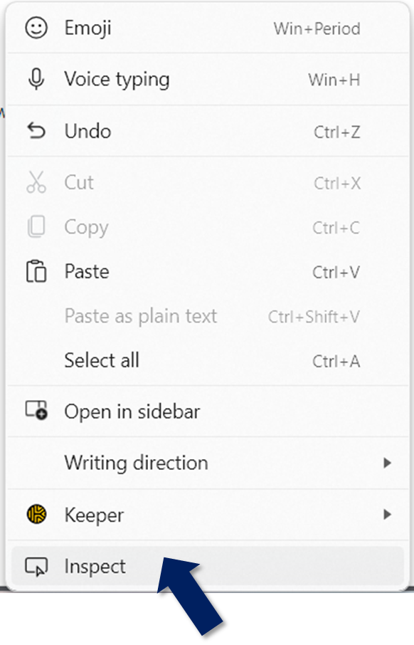 - Haga clic con el botón derecho del ratón en la pantalla y seleccione Inspeccionar.