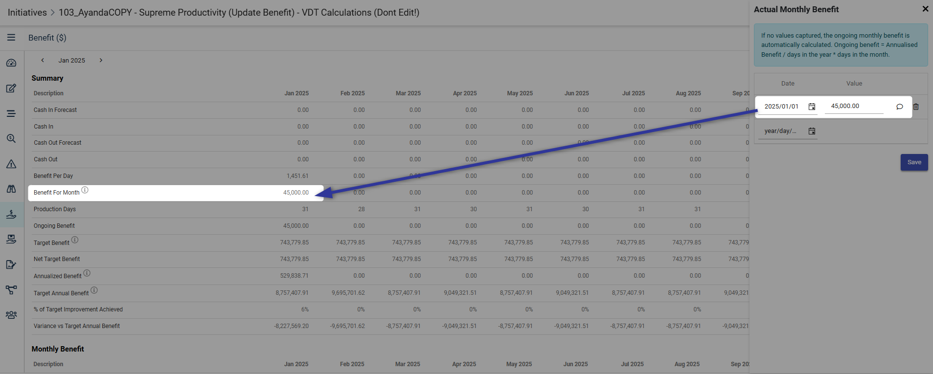 • Visualización precisa del valor: cuando ingresa un monto de beneficio mensual en Captura manual o se obtiene de una fuente, ese valor exacto ahora aparece de manera consistente en todos los informes y paneles. No más conversiones o discrepancias inesperadas.